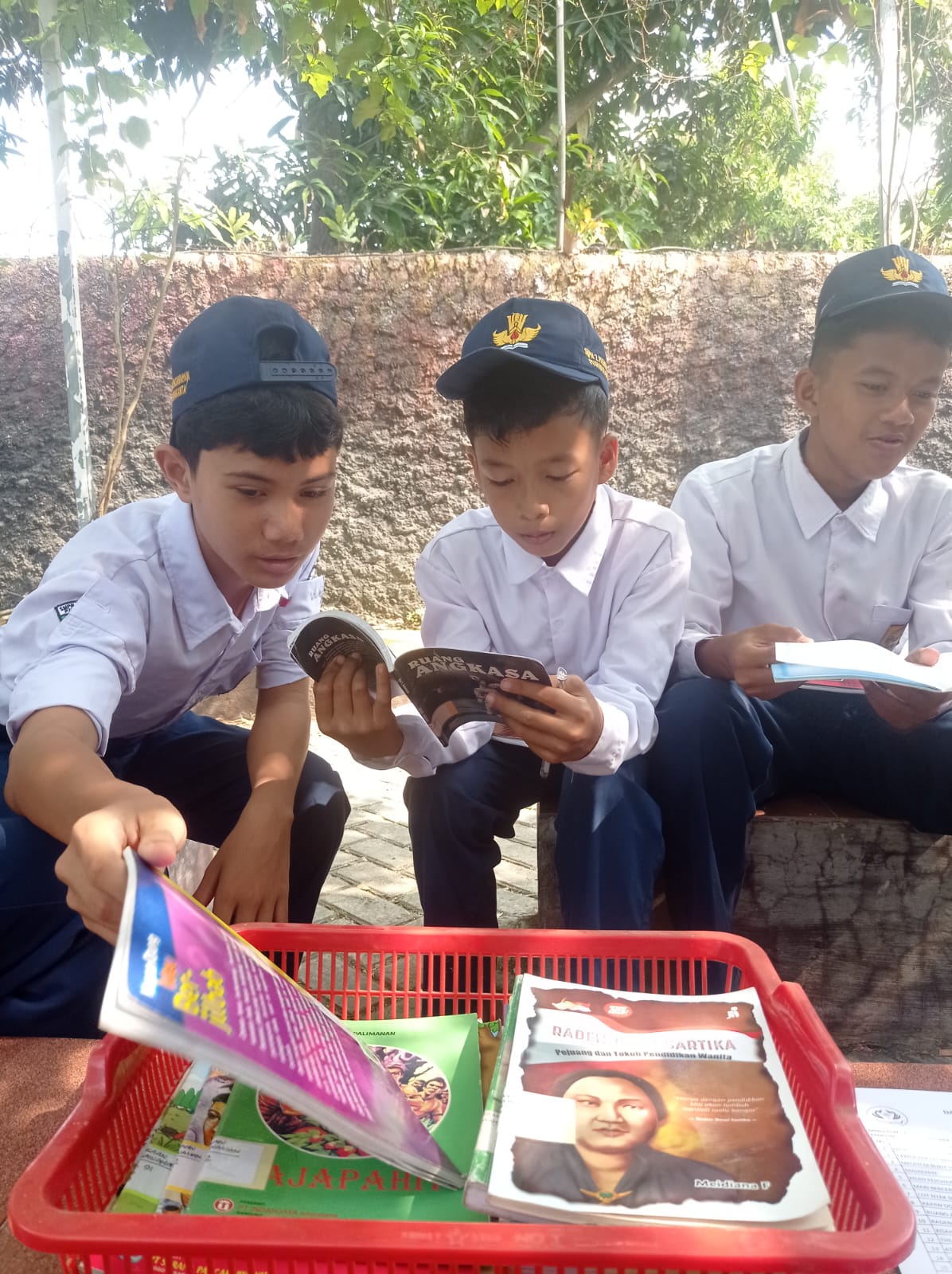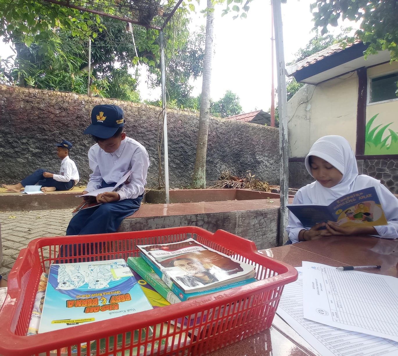Tidak hanya di Jumat, 18 Oktober 2024, kegiatan pojok baca juga digelar pada Senin, 21 Oktober 2024. Kali ini, lokasinya berpindah ke Leuit, taman depan sekolah. Suasana yang nyaman dan teduh di bawah rimbunnya pepohonan membuat siswa betah berlama-lama membaca.
